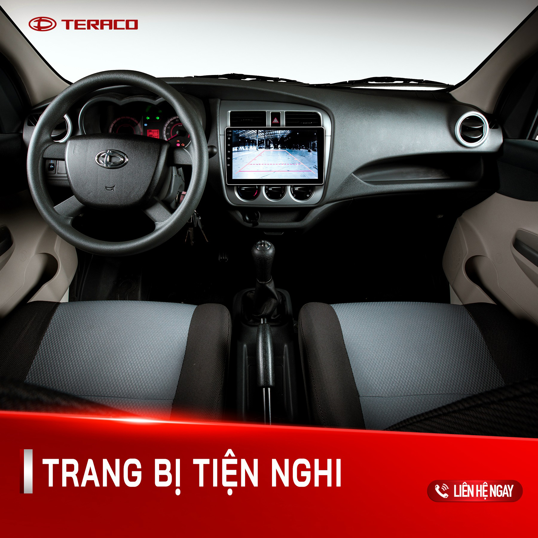 - – Tera 100S được trang bị màn hình cảm ứng đa phương tiện có kích thước 9 inch nhằm đáp ứng nhu cầu giải trí trên xe. Màn hình này cũng là nơi hiển thị hình ảnh từ camera lùi phía sau, đảm bảo an toàn khi lùi xe.